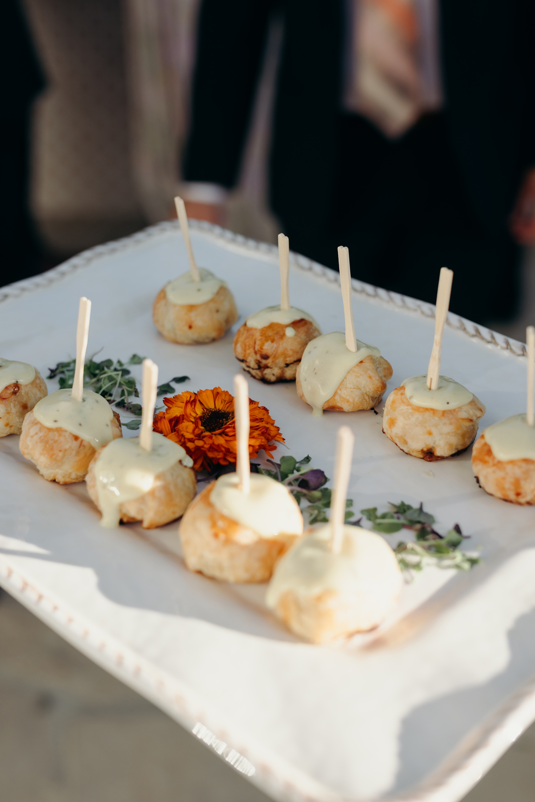 Guests lined up for Wood-Fired Neapolitan and Classic BBQ Chicken Pizzas that were cut and served fresh while Filet and Wild Mushroom Wellingtons and Mini Ahi Tacos were tray passed around the Olive Grove. Signature Aperol Spritz and Tequila Moscow Mule cocktails were poured at the bar along with beer and wine keeping guests refreshed. After lots of mixing and mingling, guests checked the seating chart and headed inside for the reception.